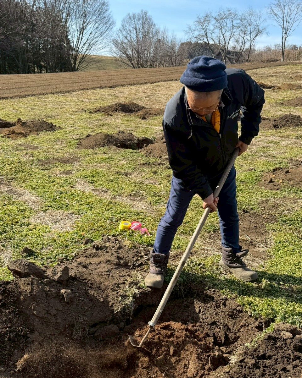 苗木がこの土地で何年も根を張り、実を結び、やがて食卓へとつながっていく未来を思い描きながら、土を耕し、栄養のバランスを整え、水はけを確かめる。静かな土壌づくり。